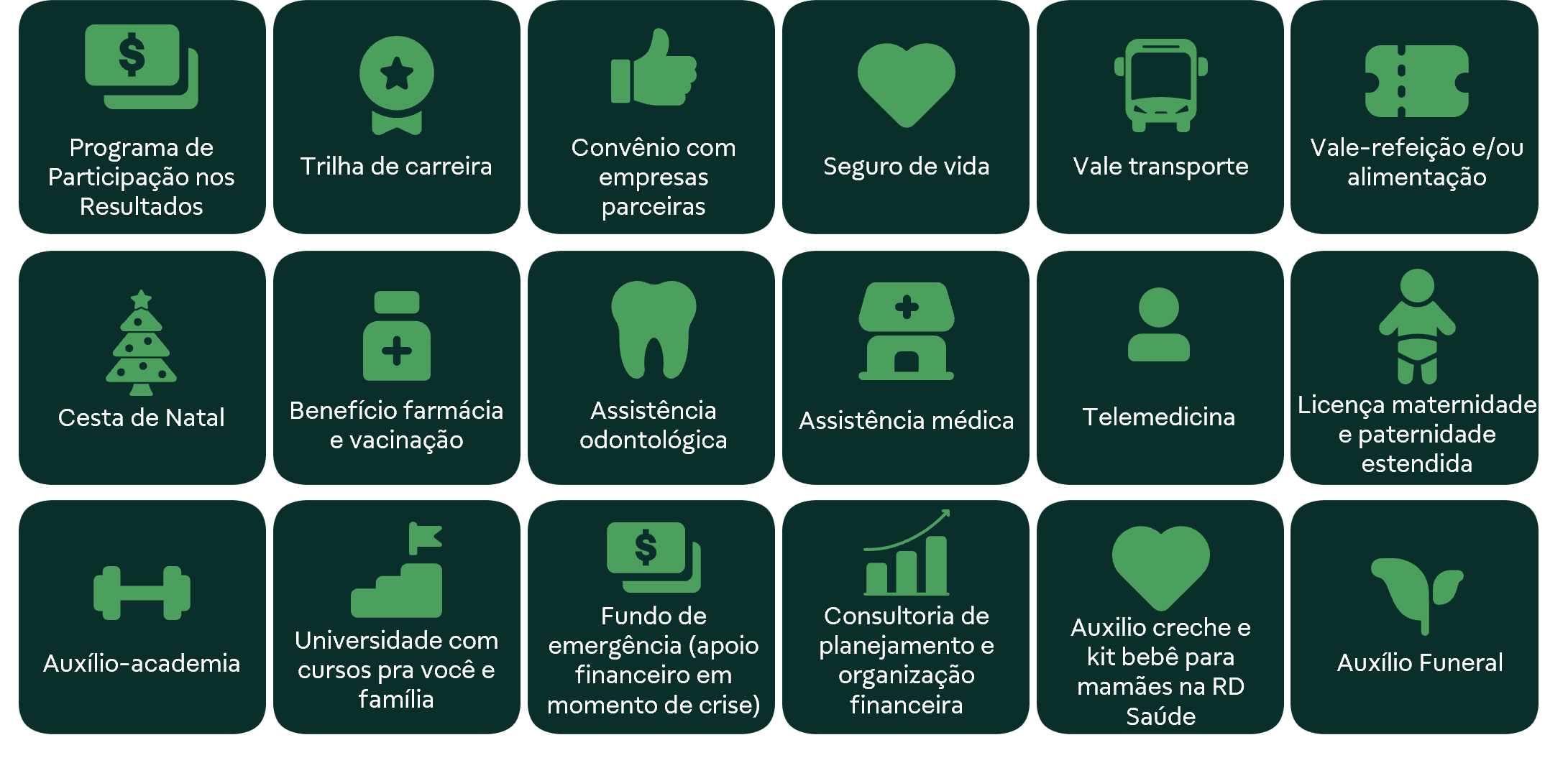 · Auxílio creche e kit bebê para mamães na RD Saúde;